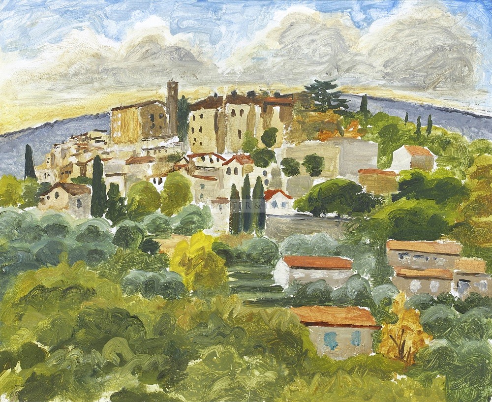 As with many British painters before him, Alex regularly takes that well-trodden path to the Mediterranean countries and the extraordinary light they offer. By contrast, his paintings there are lit up with the evident pleasure he derives from the area. His brushstrokes lighten along with his palette, and his style adopts a post-impressionism reminiscent of the later Bloomsbury works. His paintings are gentle, light of touch, beautifully composed, and infused with a poetic lyricism that belies the confidence of their construction.