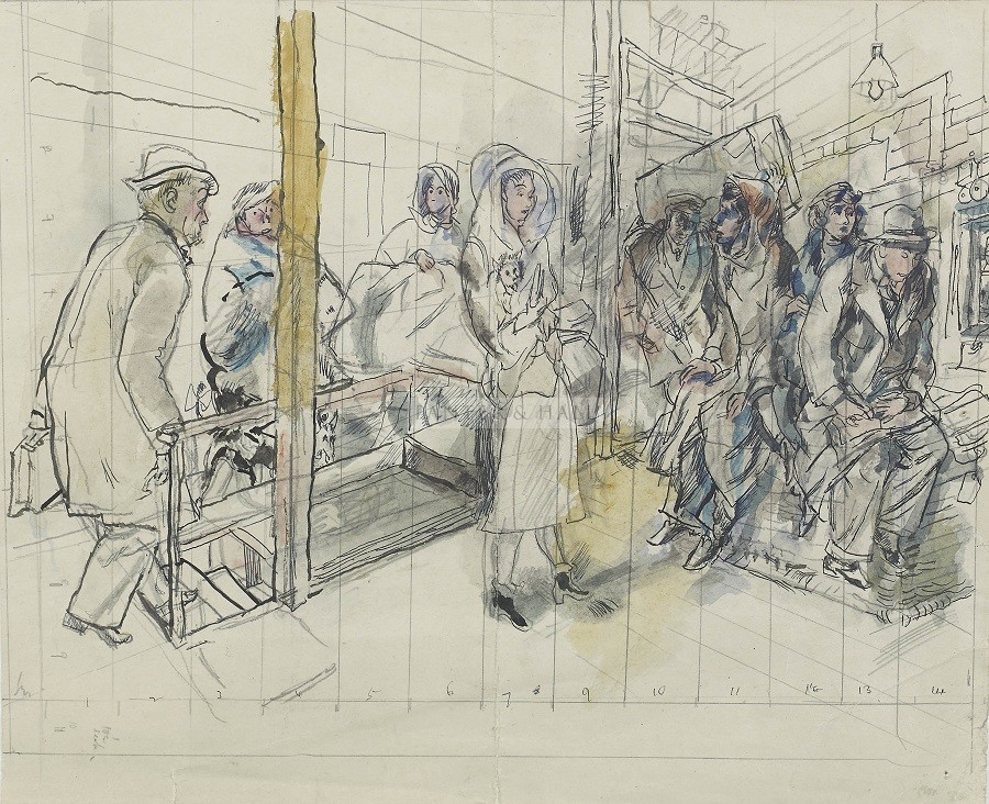 pencil, ink and watercolour