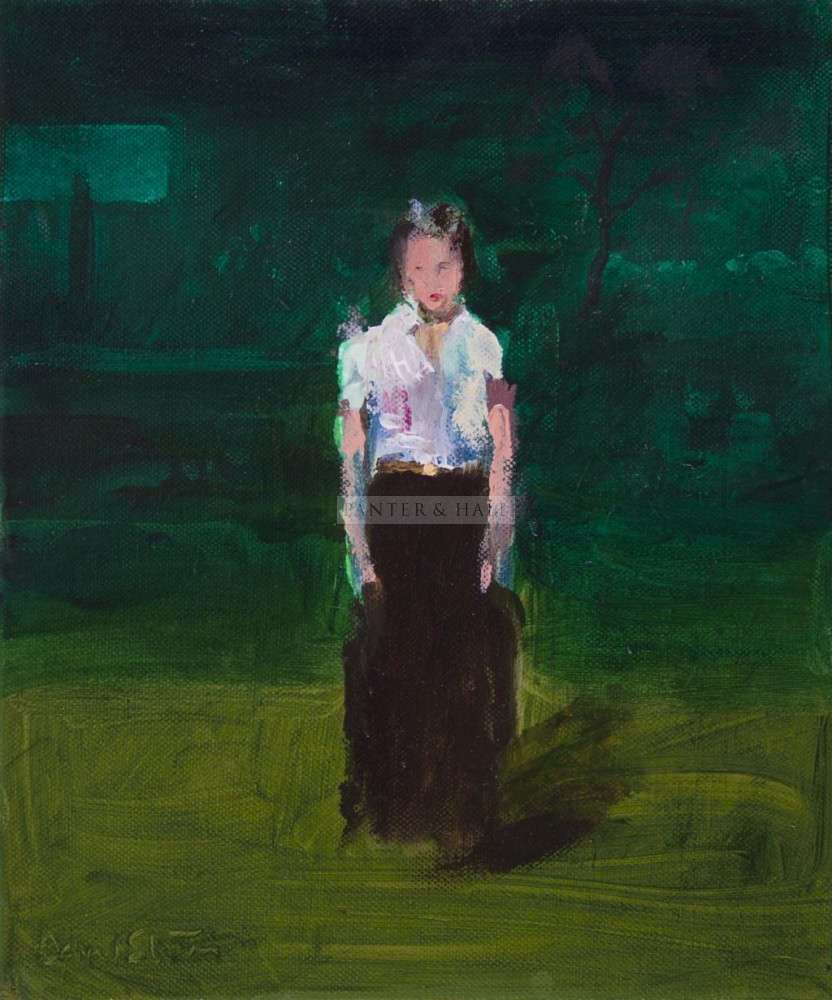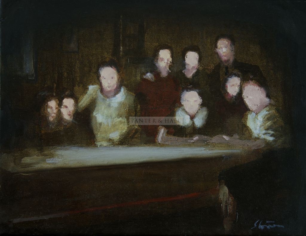 Personally, I find working with memory very therapeutic as well as creatively invaluable. For example, when I was six or seven years old, I was off school ill one day and my mother found an old jigsaw that she gave me to make. The problem was, the box didn't have a picture to follow. Anyway, I spent all day assembling the puzzle, which turned out to be a really haunting image: a painting of a bedroom shown in semi- darkness—deep maroon bedcovers, rich wall tapestries in bottle green and dark blue, with gold trim—and inside the bed a gaunt woman, either asleep or dead. Memories of experiences like this are hugely valuable to me. It has become a kind of paradigm. I become haunted by the image I'm working with and it's tremendously satisfying when I manage to get the milky idea from the back of my mind onto the canvas.